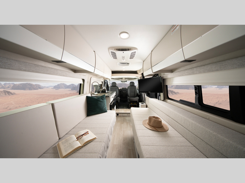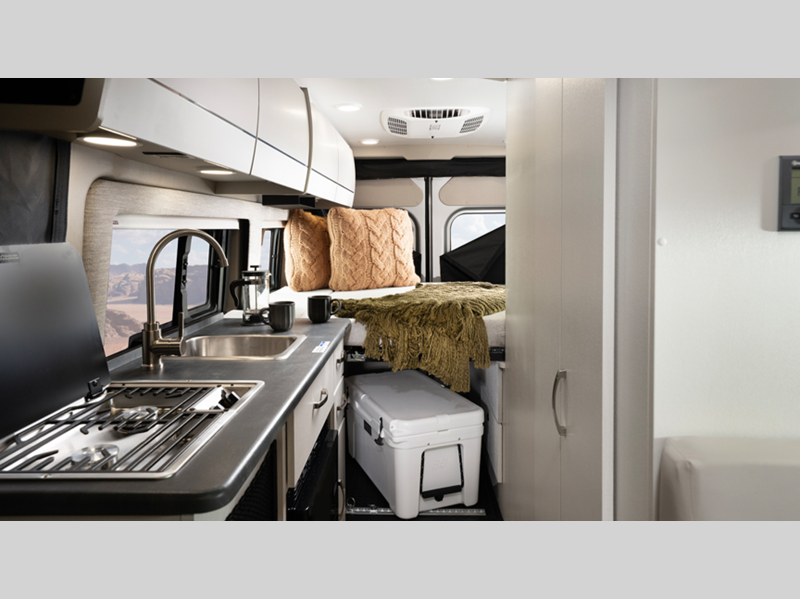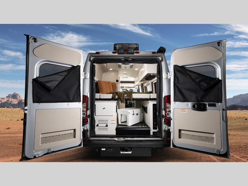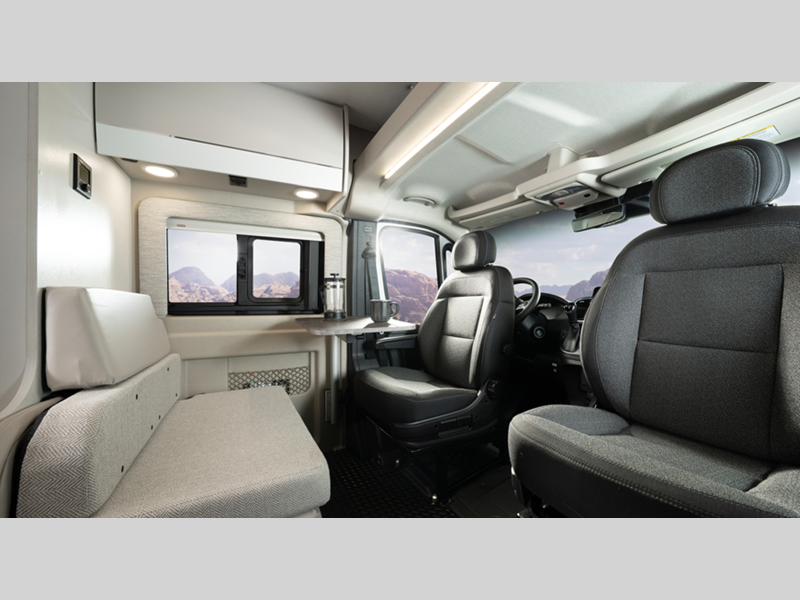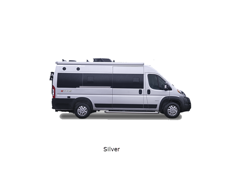 Sleeps 2 Length 20 ft 11 in Ext Width 6 ft 11 in Ext Height 9 ft 3 in Int Height 6 ft 2 in Interior Color Caribou Exterior Color Granite, Silver Hitch Weight 3500 lbs GVWR 9350 lbs Fresh Water Capacity 24 gals Grey Water Capacity 13 gals Black Water Capacity 12 gals Tire Size LT225/75R 16E Furnace BTU 20000 btu Generator 2,800W Fuel Type Gasoline Engine 3.6L V6 24V VVT Chassis RAM ProMaster 3500 window van Horsepower 276 hp Fuel Capacity 24 gals Wheelbase 159 in Available Beds Two Twin with King Conversion Torque 250 ft-lb Refrigerator Type DC Refrigerator Size 3.1 cu ft Convection Cooking Yes Cooktop Burners 2 Shower Size 25" x 43" Number of Awnings 1 Axle Weight Front 4629 lbs Axle Weight Rear 5291 lbs LP Tank Capacity 6 gals Water Heater Type Truma Combi Eco Plus AC BTU 13500 btu TV Info 24" Rear TV on Swivel Awning Info 13' Thule Armless with LED Light Strip Gross Combined Weight 12000 lbs Shower Type Wet/Bath Shower Electrical Service 30 amp Similar Floorplans